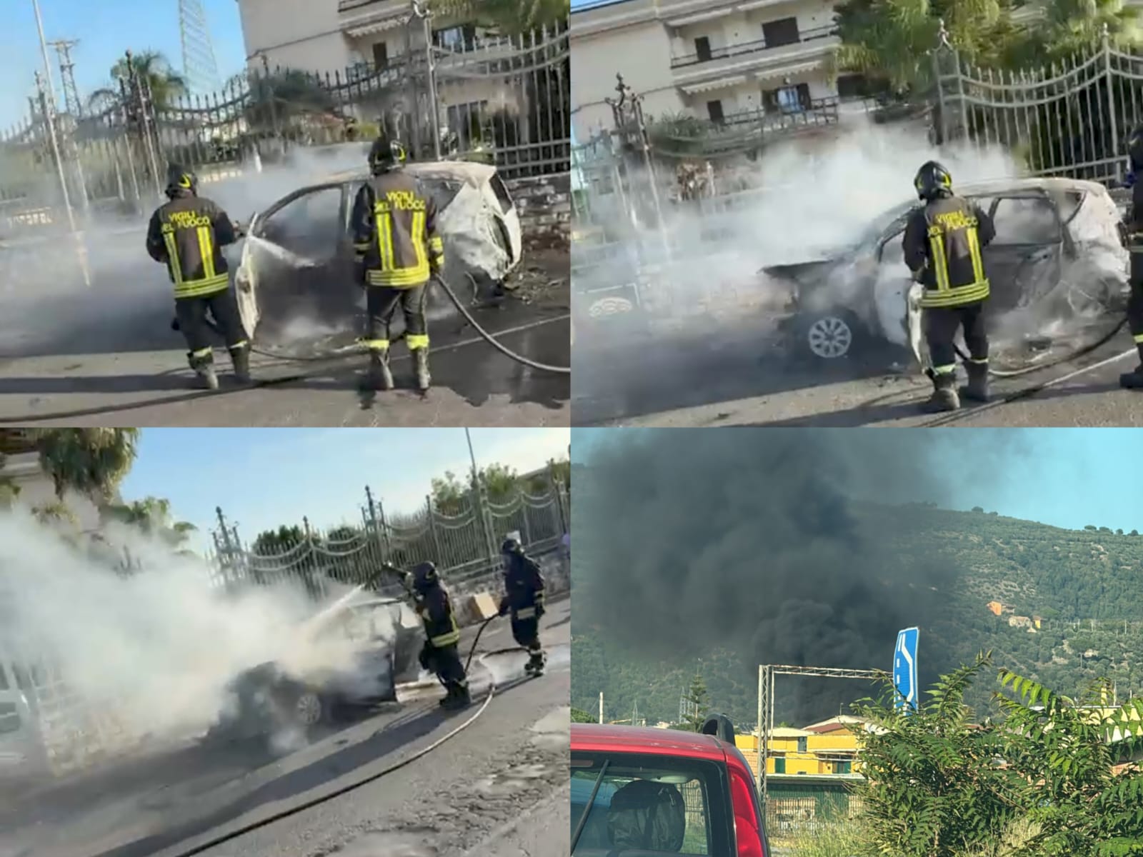Oltre a loro anche i vigili urbani si sono recati sul luogo dove il rogo si stava sviluppando. Mentre i pompieri correvano sul posto, il fumo proveniente dal veicolo in fiamme si è innalzato verso l’alto formando una colonna visibile da lontano.