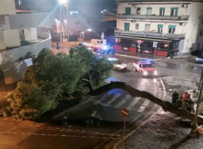 MONDRAGONE. Il Casertano conta i danni già prima dell’ondata di maltempo. A Mondragone il maestoso pino situato alla rotonda tra viale Margherita e la Domiziana è improvvisamente crollato al suolo.