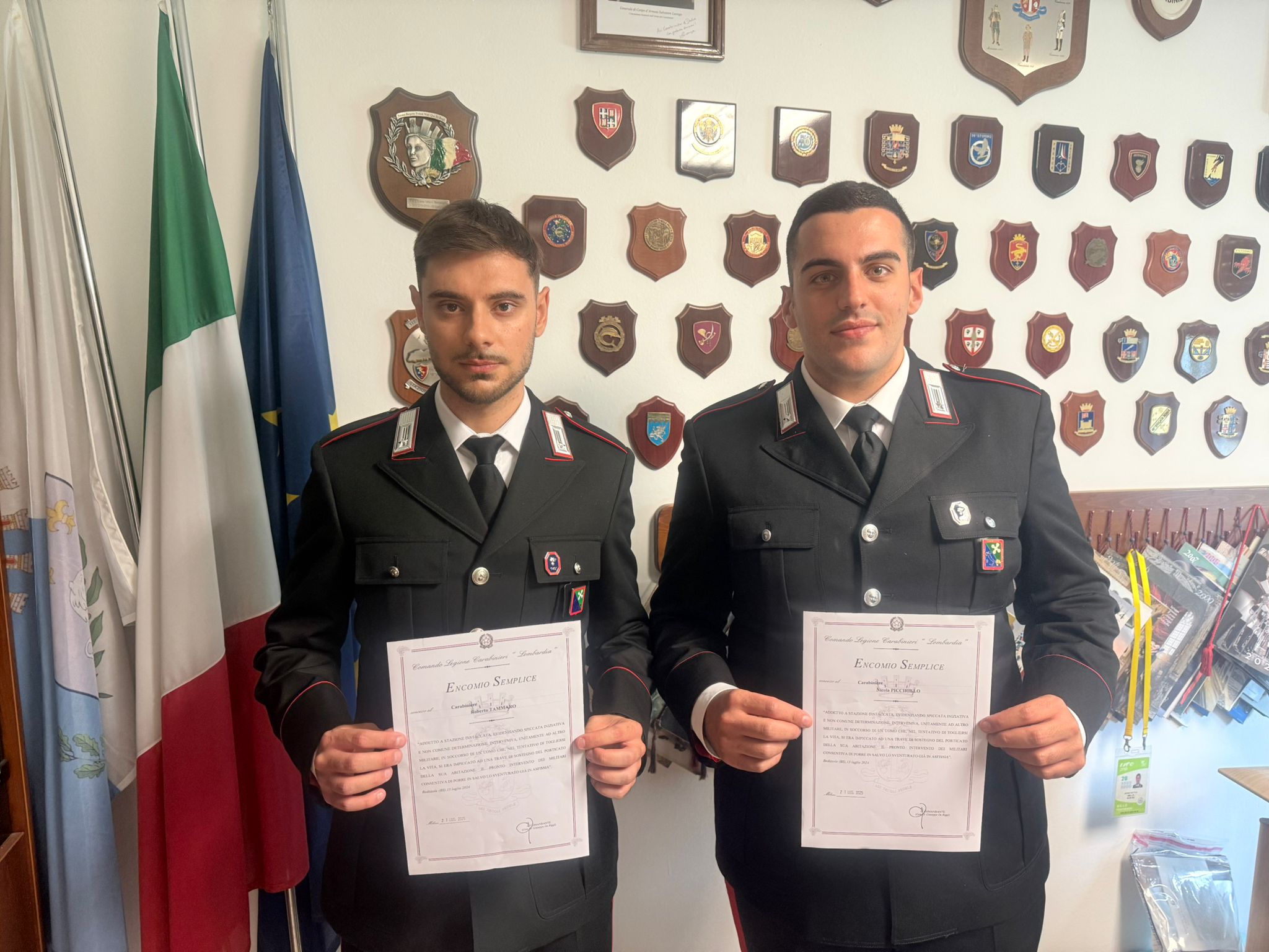 Per il loro gesto eroico, i due Carabinieri hanno ricevuto questa mattina un Encomio presso la Caserma “Montebello” situata a Milano, conferito dal Generale di Divisione Giuseppe De Riggi, Comandante della Legione Carabinieri “Lombardia”. Il Generale ha voluto personalmente riconoscere il valore, la prontezza e la dedizione al servizio dimostrati in una situazione di estrema criticità.