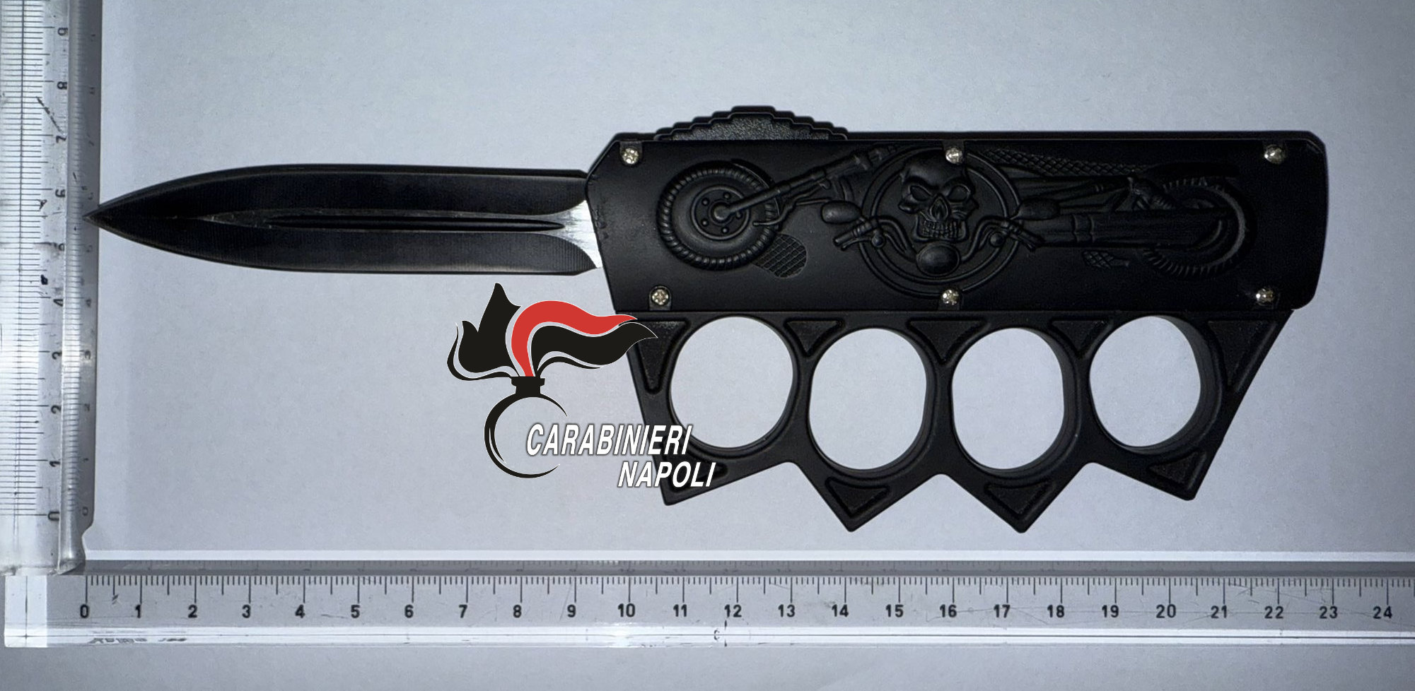 Significativo, invece, il rinvenimento durante un controllo stradale di un tirapugni modificato con all’interno una lama a scatto lunga 9 centimetri. Un’arma di questo tipo rappresenta un pericolosissimo strumento da offesa, capace di unire la forza devastante del tirapugni con la letalità di un coltello nascosto. Un’arma non solo proibita ma potenzialmente letale anche in contesti di una banale discussione. L’arma era in possesso di un 23enne ed è stata sequestrata.