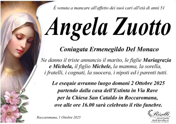 Roccaromana. Grande dolore per la comunità di Roccaromana. Una madre di famiglia si è purtroppo spenta prematuramente. Si chiamava Angela Zuotto, aveva 51 anni.