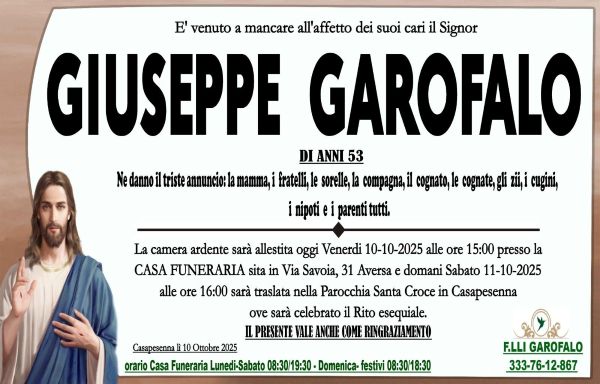 Casapesenna. Comunità in lutto oggi a Casapesenna, per la prematura scomparsa di Giuseppe Garofalo. Purtroppo si è spento a soli 53 anni.