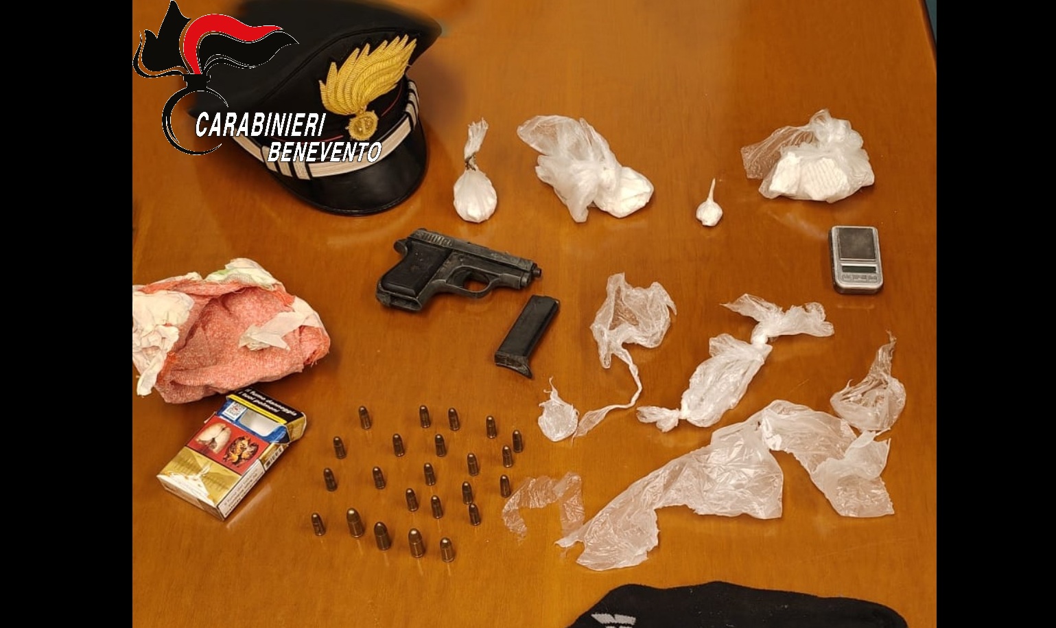 SANNIO. Operazione di successo per i Carabinieri della Compagnia di Benevento che, nell’ambito di un servizio di controllo del territorio finalizzato al contrasto dello spaccio di sostanze stupefacenti, hanno tratto in arresto in flagranza di reato due coniugi beneventani, un 80enne e una 57enne, responsabili – a vario titolo – di detenzione di arma clandestina e detenzione ai fini di spaccio di sostanze stupefacenti.