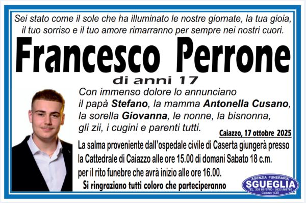 Per giorni, Francesco è stato tra la vita e la morte e i medici hanno provato a salvarlo in ogni modo, ma sfortunatamente, nonostante gli sforzi compiuti, non ce l’ha fatta, lunedì se ne è andato per sempre. Il ragazzo era un giovane studente che frequentava l’istituto di Piedimonte Matese, conosciuto come un ragazzo gentile, buono ed educato, l’amico di tutto e davvero una gran brava persona.