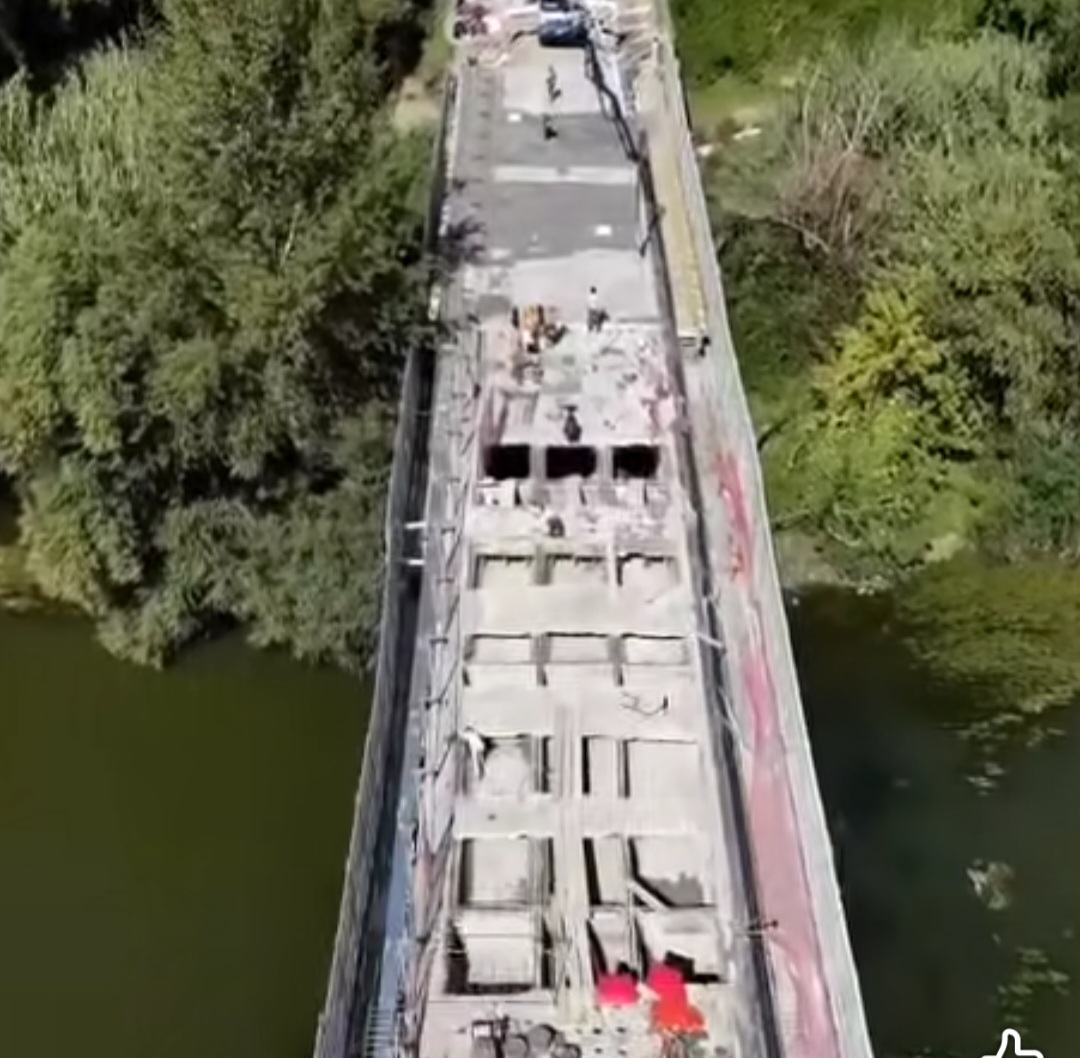 Il ponte, composto da tre archi principali, vede dunque il completamento della prima campata, mentre restano da realizzare i due archi successivi. Nonostante i numerosi imprevisti incontrati durante le fasi precedenti — legati a difficoltà tecniche e alla complessità dell’opera — l’amministrazione mantiene un atteggiamento fiducioso: salvo nuove criticità, la conclusione delle opere strutturali è prevista entro la fine di ottobre.