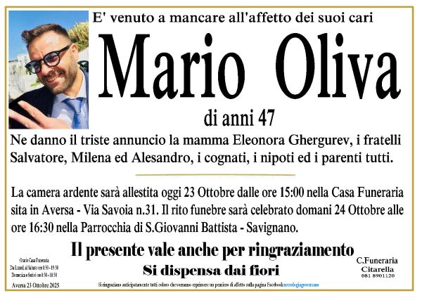Si chiamava Mario Oliva, aveva 47 anni ed è venuto a mancare nelle scorse ore. La sua dipartita ha scosso profondamente la comunità locale, gettando nel dolore e nello sconforto amici e parenti, che si trovano ora distrutti e costretti a fare i conti con una tale tragedia.