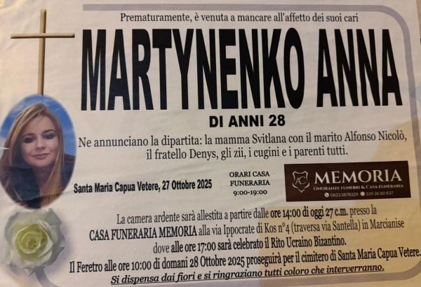 La sua prematura scomparsa ha scosso profondamente la comunità locale e distrutto amici e parenti ora in lacrime. Era conosciuta da tutti come una gran brava persona, una ragazza solare, gentile e altruista, una madre amorevole e dolce. Era di origini ucraine ma risiedeva nella zona della Villa Comunale a Santa Maria Capua Vetere da tempo.