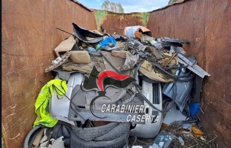 Sul posto sono stati rinvenuti motori di autocarri, pneumatici, parti meccaniche e di carrozzeria, oltre a vari rottami ferrosi. In un casolare e in un container presenti nella proprietà erano accatastati ulteriori rifiuti della stessa tipologia.