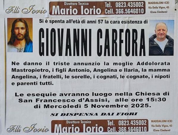 L’accaduto ha scosso la comunità e distrutto la famiglia della vittima. Si chiamava Giovanni Carfora. Dopo il ritrovamento, la salma fu sequestrata dall’autorità giudiziaria per poter eseguire gli esami autoptici e così comprendere le cause della morte. Stando agli esami, l’uomo è deceduto per cause naturali.