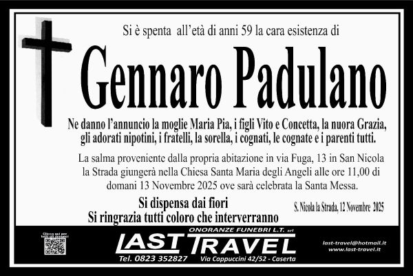 San Nicola la Strada. Grande dolore a San Nicola la Strada. Un padre di famiglia si è purtroppo spento prematuramente. Si chiamava Gennaro Padulano, aveva 59 anni.