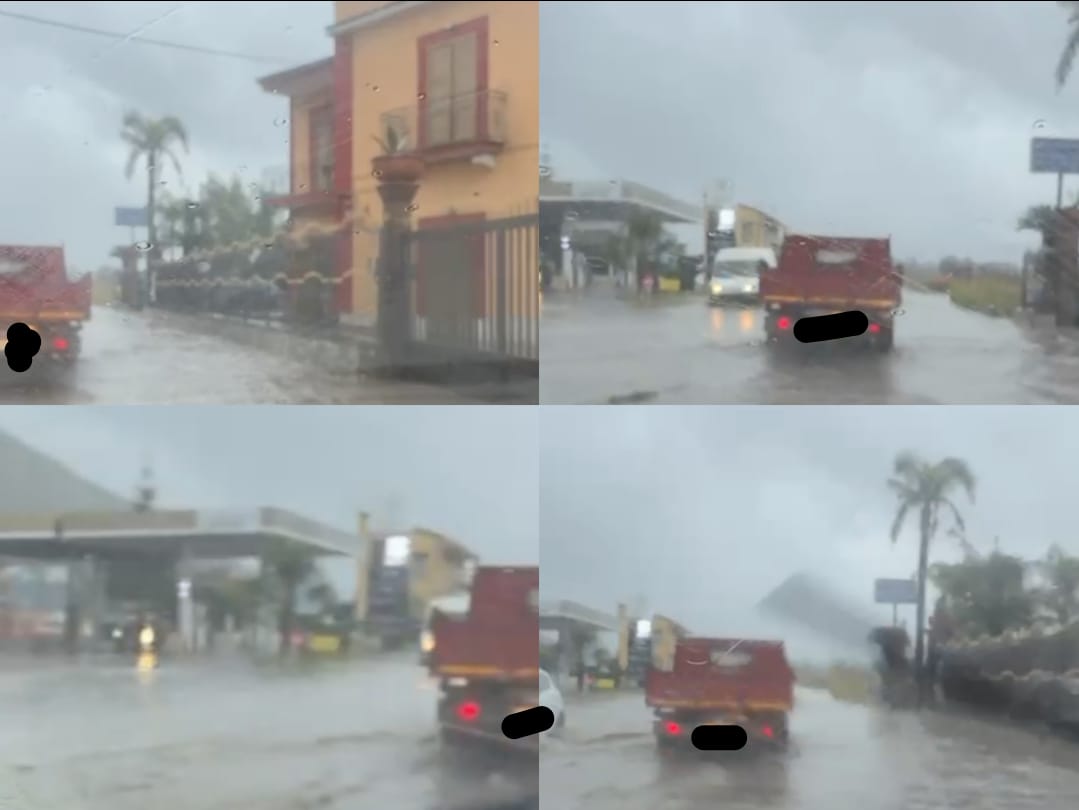 L’acqua piovana ha invaso diverse aree della frazione, tra cui anche la Statale 7 e gli automobilisti si trovano a quasi a dover “navigare” più che guidare a causa delle condizioni in cui la Statale si torva al momento.