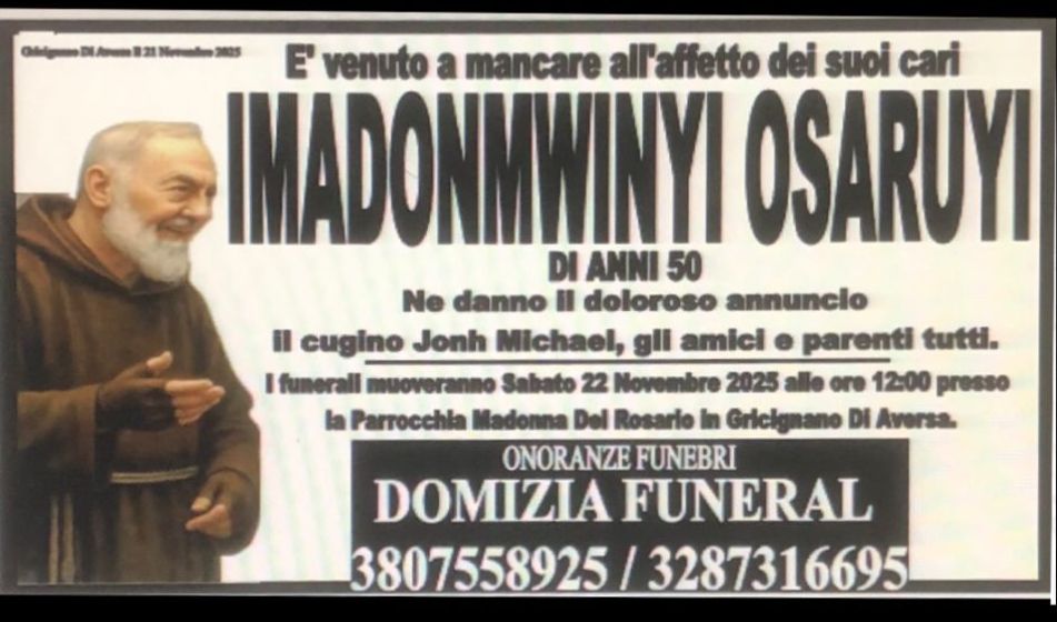 Gricignano d’Aversa. Grande dolore per la comunità di Gricignano d’Aversa, Un suo figlio si è spento prematuramente, all’età di 50 anni. Si chiamava Osaruyi Imadonmwinyi.