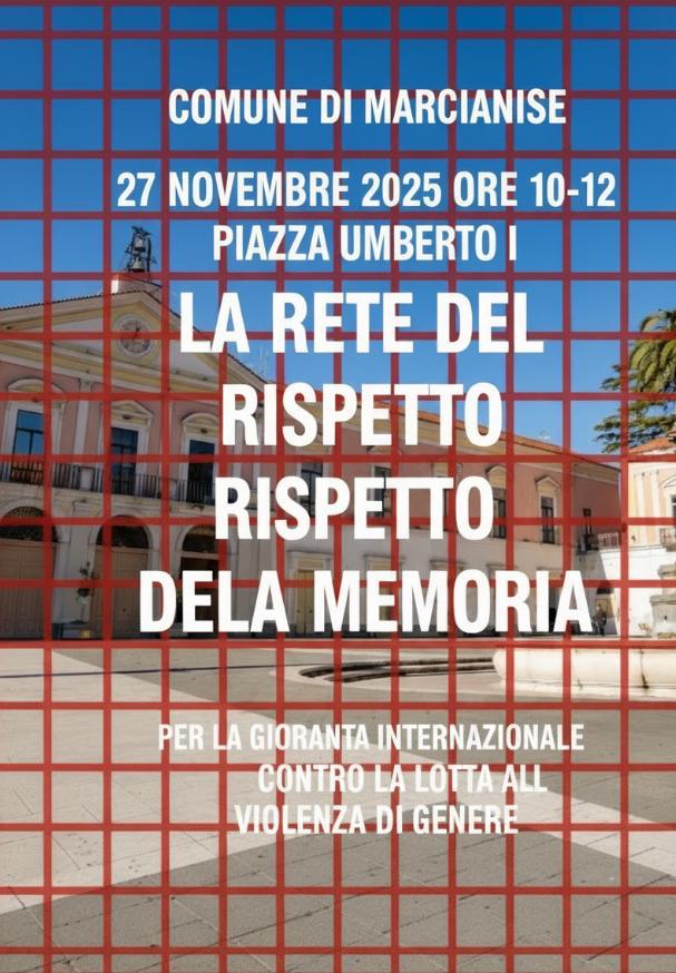 “Il Comune di Marcianise promuove, in occasione della Giornata Internazionale per l’Eliminazione della Violenza di Genere, l’iniziativa “La Rete del Rispetto – La Rete della Memoria”, che si terrà giovedì 27 novembre 2025, dalle ore 10 fino alle ore 12, in Piazza Umberto I.