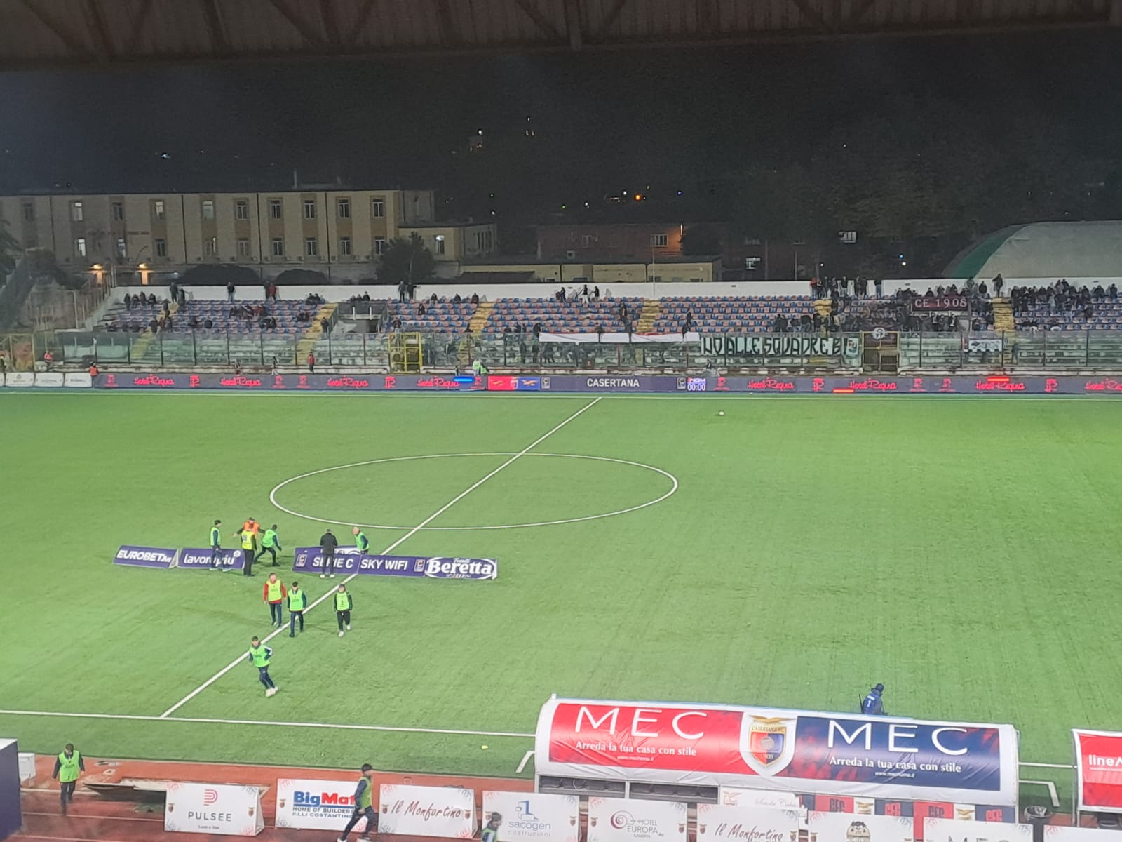 Un istante dopo, è Kontek che salva sulla linea su colpo sicuro di Guerini. All’intervallo è 1-0, decide Casarotto al 35°. Al 51° Toscano innesta Llano che si inserisce a meraviglia ma non riesce a battere Vismara in scivolata. Un minuto dopo, la Casertana salva per la terza volta sulla linea, questa volta è Liotti a salvaguardare il vantaggio rossoblù. Al 53° Casarotto non sfrutta l’occasione per la doppietta personale ma Vismara è bravo in uscita a chiudergli lo specchio della porta. Al 74° Casarotto manca ancora l’occasione per il raddoppio, con il numero 90 che tende ad allargarsi e tira quasi debolmente e Vismara sputa la sfera in angolo. All’85° l’Atalanta rimane in 10 per fallo da ultimo uomo di Obric su Casarotto, che si sarebbe potuto trovare da solo a tu per tu con Vismara. Al 97° Kontek salva in scivolata su Cisse, salvando i falchetti che conquistano 3 punti d’oro, a -1 dal Cosenza quarto