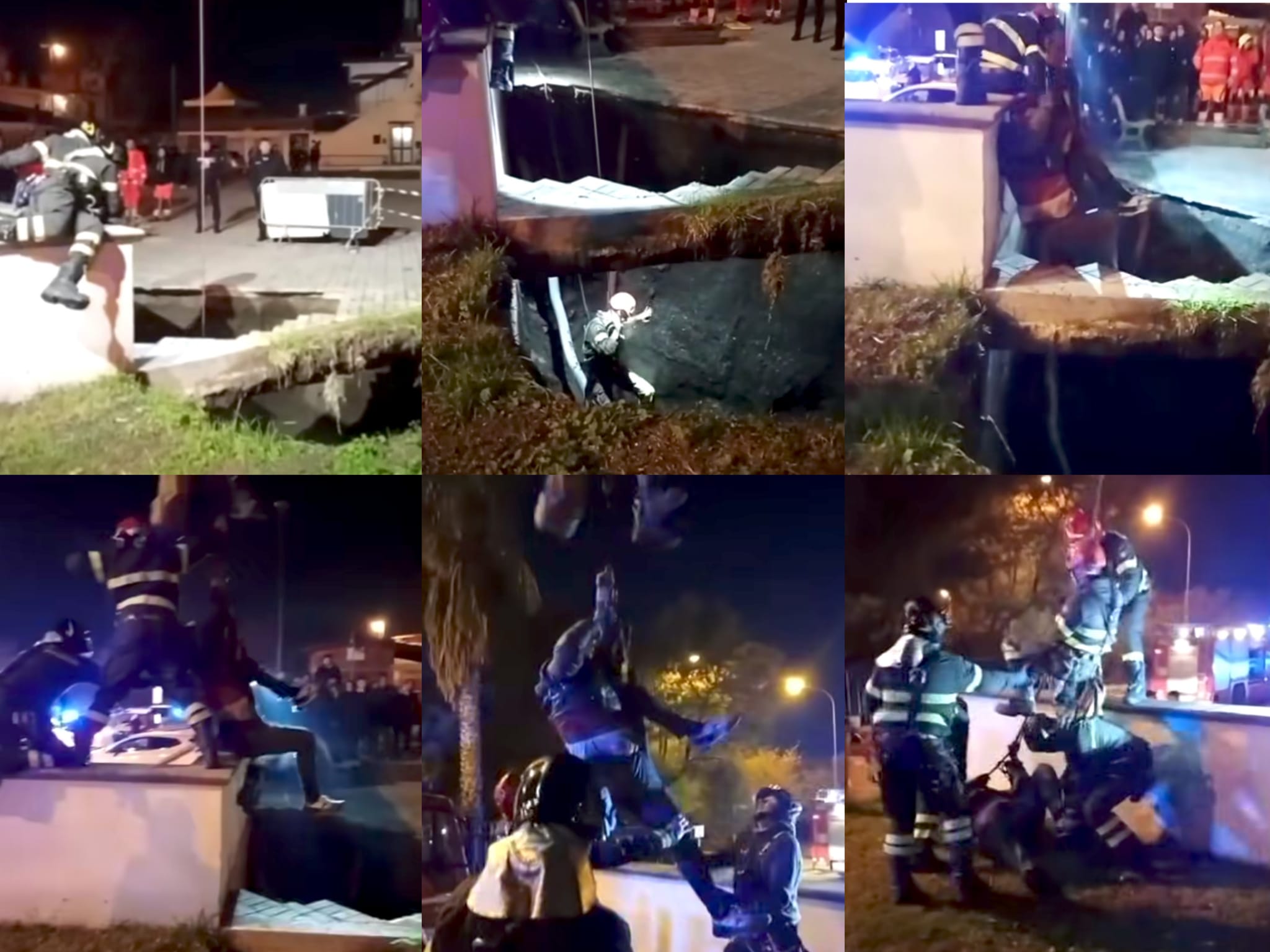Temendo per l’uomo sono stati subito chiamati i soccorsi e sul posto sono corsi i vigili del fuoco del distaccamento di Nola, supportati dal nucleo SAF di Napoli. I pompieri, avvalendosi anche di una gru-autoscala, legati a una corda per sostenersi, si sono calati all’interno dell’enorme voragine per raggiungere l’uomo che fortunatamente era ancora vivo ma ferito per la caduta.