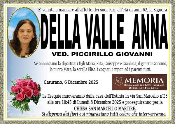 La sua scomparsa ha gettato nel dolore e nello sconforto amici e parenti ora in lacrime. Lascia quattro figli, Maria, Rita, Giuseppe, Gianluca, la sorella Elisa e i parenti.