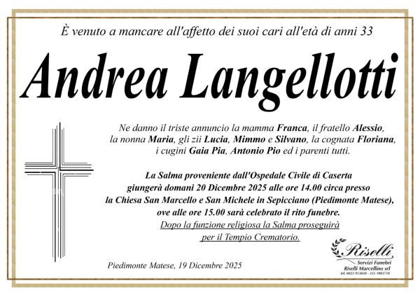 La terribile scoperta è stata fatta dal fratello Alessio, capitano della FC Matese, che ha chiamato i soccorsi, che sfortunatamente nulla hanno potuto fare a parte constatare il suo decesso. Si chiamava Andrea Langellotti.