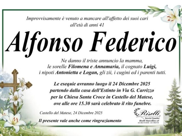 Si chiamava Alfonso Federico, aveva 41 anni. La comunità, appresa la triste notizia, ha subito mostrato la propria vicinanza ai parenti cercando di dare loro conforto e supporto.