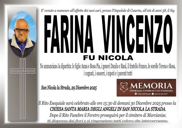 Si chiamava Vincenzo Farina, conosciuto come un uomo gentile e buono, un ottimo padre, una persona educata e generosa, sempre pronto ad aiutare. Lascia le figlie Anna e Rosa Pia, il fratello Franco, le sorelle Teresa e Rosa, e i parenti in lacrime per la tragedia che li ha colpiti.