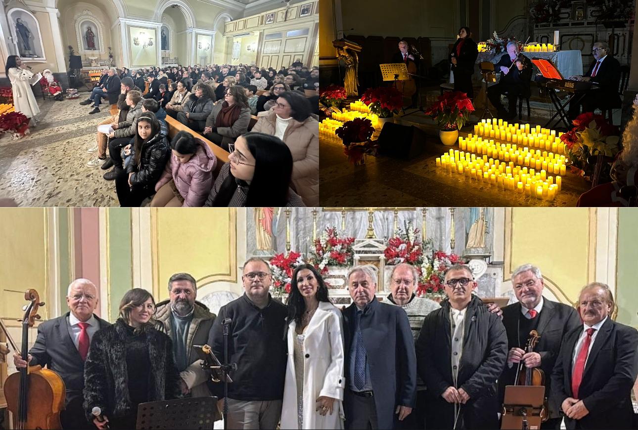 Cancello Scalo. Una chiesa illuminata dal calore tremolante delle candele, le note senza tempo delle melodie natalizie, la forza delle parole e dell’arte che si intrecciano alla memoria e alla tradizione. È stato tutto questo – e molto di più – “Natale che Vive – Concerto Candlelight, tra Parole, Arte e Tradizione”, l’evento che ha regalato alla comunità una serata di rara intensità emotiva. Sin dai primi istanti, l’atmosfera è apparsa sospesa, quasi sacra: valori, emozioni, cultura e musica hanno dialogato tra loro con naturalezza, toccando le corde più profonde di una platea gremita e attenta. Ad aprire la serata, i saluti di don Carmine Passaro, accolti da un sentito ringraziamento per la sua costante disponibilità e per l’ospitalità che da sempre offre alle iniziative culturali del territorio. Subito dopo, il quartetto “Sursum Corda” ha avvolto il pubblico con un repertorio raffinato, eseguendo alcune tra le più amate canzoni della tradizione natalizia, in un crescendo di armonie che ha reso l’ambiente ancora più suggestivo.