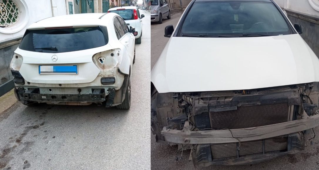 Il veicolo, una Mercedes di colore bianco, parcheggiato regolarmente lungo una strada del centro abitato, è stato preso di mira con un’azione rapida e mirata. Ignoti, con ogni probabilità professionisti del settore, hanno smontato diverse parti dell’auto lasciandola su strada in condizioni evidenti di danneggiamento. Dalla parte posteriore mancano completamente i gruppi ottici, mentre il paraurti risulta rimosso e abbandonato solo in parte, lasciando scoperti i supporti interni e la struttura del veicolo.