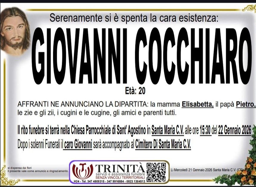 Si chiamava Giovanni Cocchiaro, aveva solo 20 anni. Anche se la sua vita è stata breve, ha lasciato un segno indelebile in coloro che hanno avuto la fortuna di conoscerlo e amarlo. La sua scomparsa ha scosso la comunità locale che si è subito stretta ai familiari per aiutarli a sopportare il dolore della tragedia che sfortunatamente li ha colpiti.