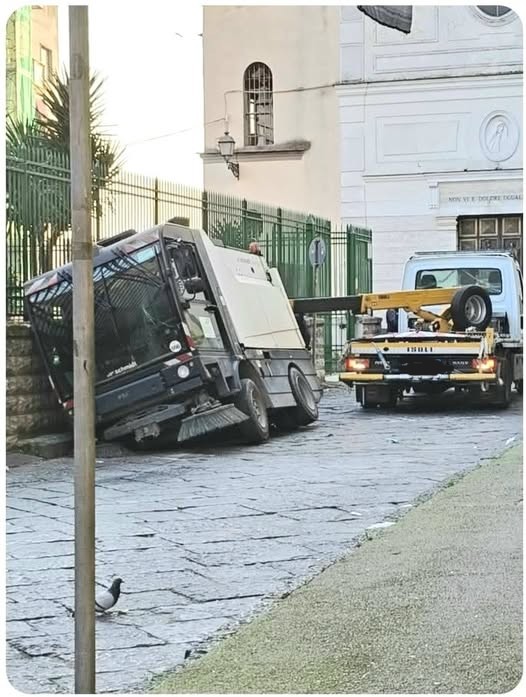 Aversa. Paura questa mattina ad Aversa. Un camion delle nettezza urbana, si trovava lungo via Gaspare Virgilio, nei pressi della chiesa San Rocco e vicino alla recinzione del carcere Filippo Saporito, quando, si è aperta una voragine al lato della strada che ha “inghiottito” parte del mezzo.