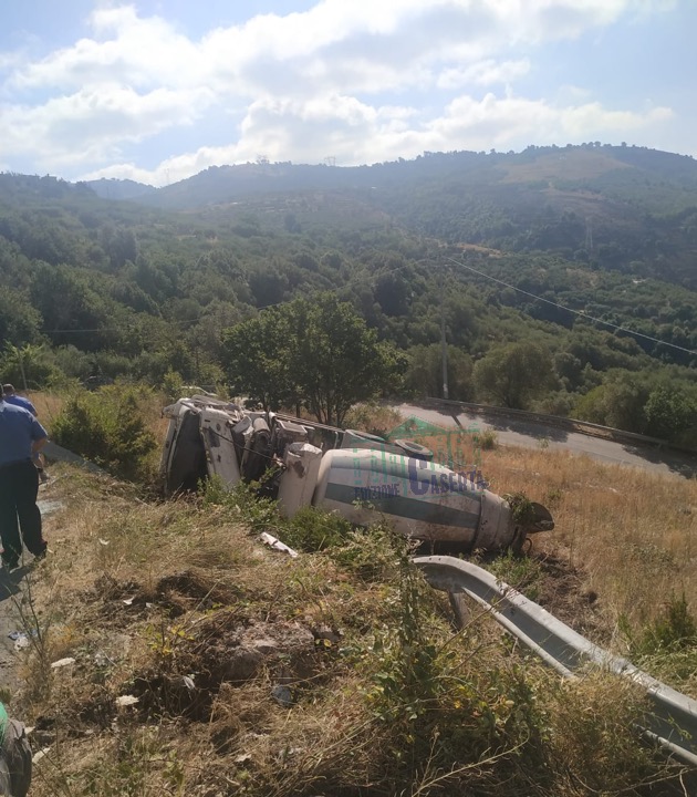 Il conducente del mezzo pesante, per evitare un frontale con l’altro veicolo, ha dovuto eseguire una brusca manovra e ciò ha fatto si che la betoniera si ribaltasse su sé stessa schiantandosi al suolo lungo la carreggiata.