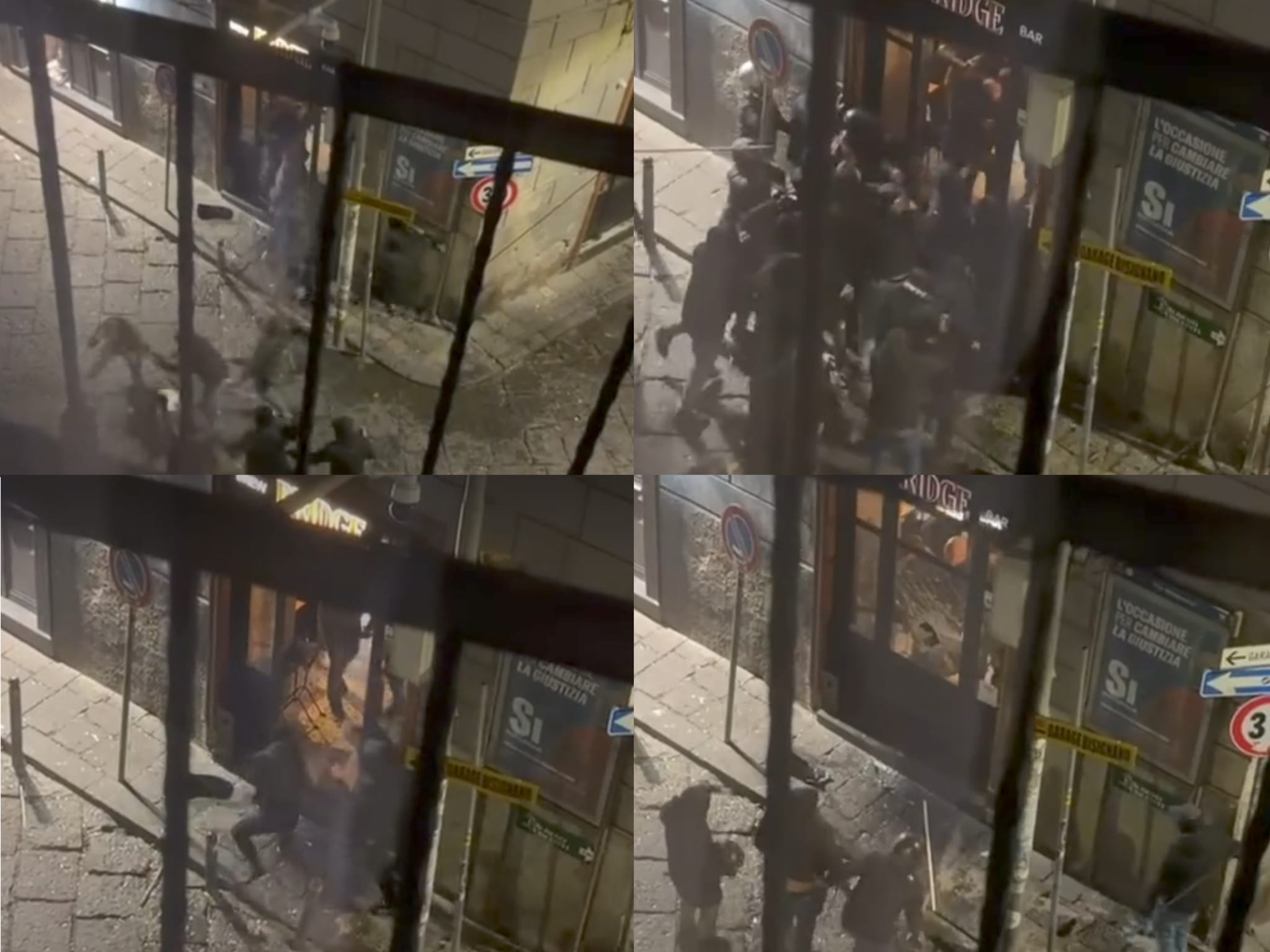 L’aggressione è iniziata in strada e le vittime di tale violenza, sono scappati all’interno del locale per mettersi al sicuro e sfuggire alla furia degli aggressori. Nel mentre, alcuni di loro hanno colpito l’ingresso dell’attività commerciale danneggiando la vetrata della porta allo scopo di entrare e continuare l’assalto. Scattato l’allarme, sul posto sono arrivati gli agenti di Polizia di Stato e i carabinieri.