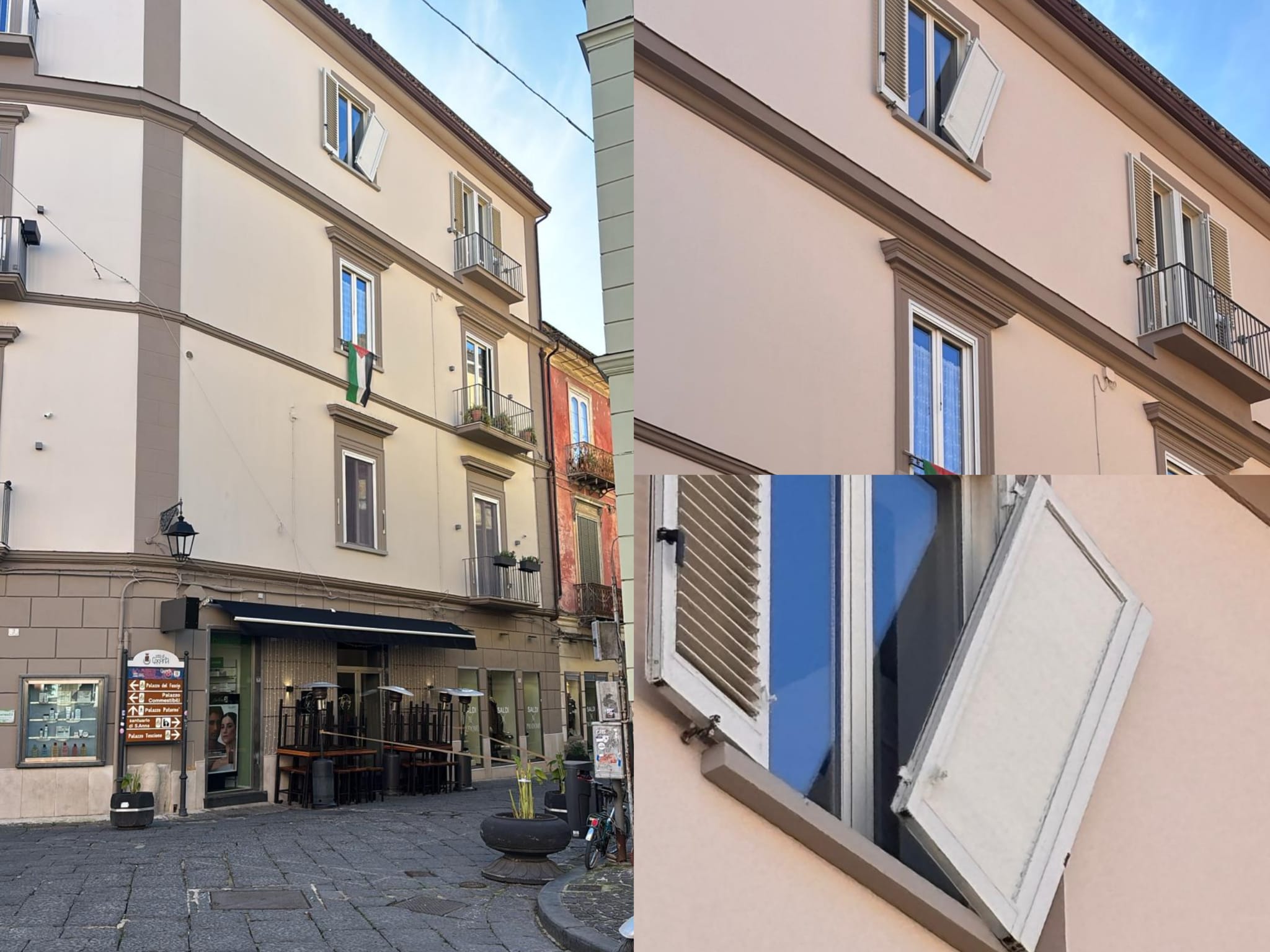 L’area interessata è stata interdetta con dei nastri per evitare che qualcuno passi di là e rischi di essere travolto dalla finestra in caso quest’ultima si stacchi e precipiti prima che vengano fatti gli opportuni lavori.