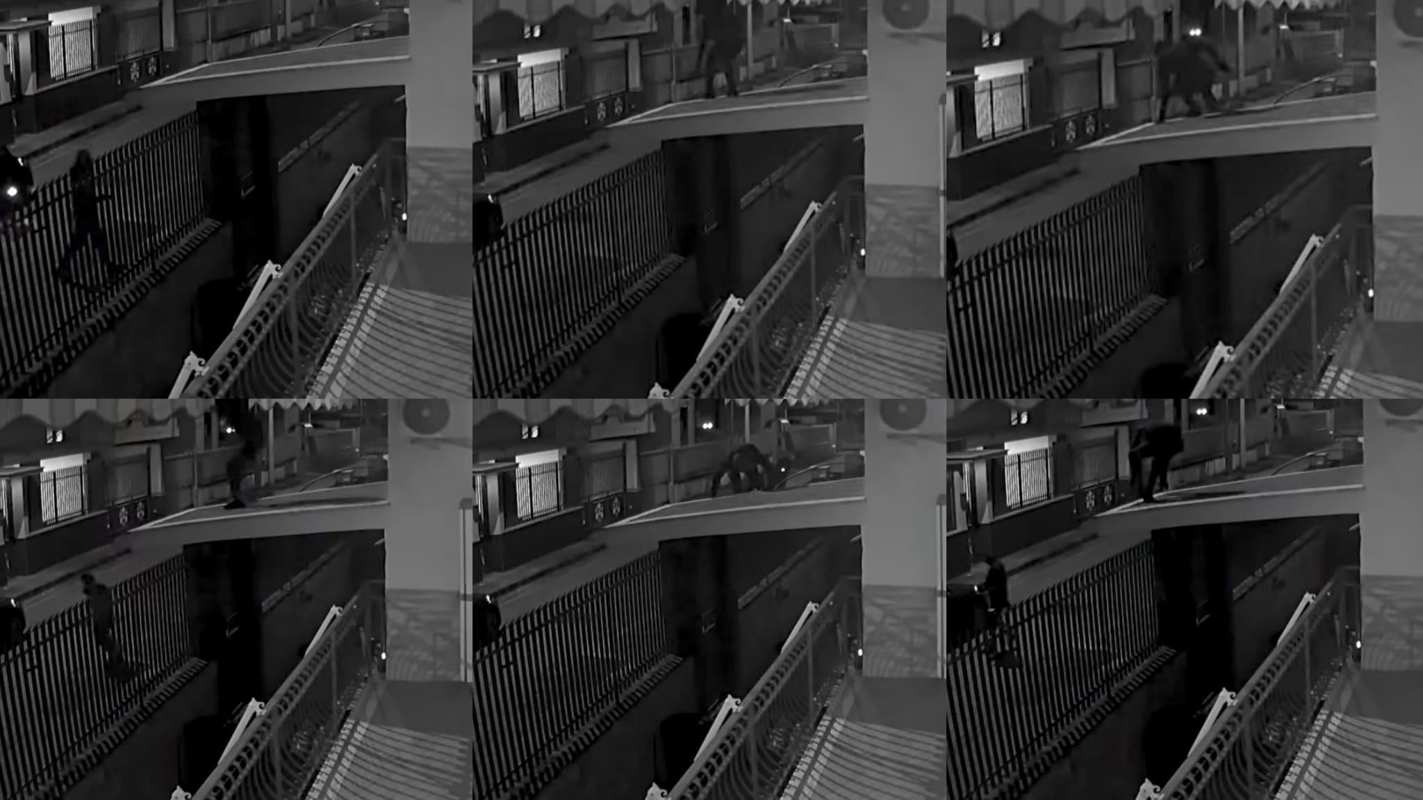 In uno di essi, si vedono i due scavalcare il cancello di una delle due abitazioni riuscendo così a raggiungere l’edificio, poi si sono saliti su una piattaforma posta sul cancello di ingresso che collega quest’ultimo alla struttura, per arrampicarsi lungo l’esterno della stessa per cercare di accadere all’interno degli appartamenti.