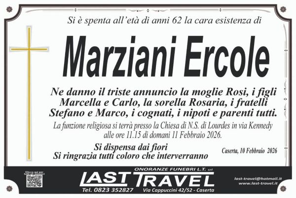 Caserta. Grande dolore oggi per la comunità di Caserta. Un padre di famiglia è purtroppo deceduto prematuramente all’età di 62 anni. Si chiamava Ercole Marziani.