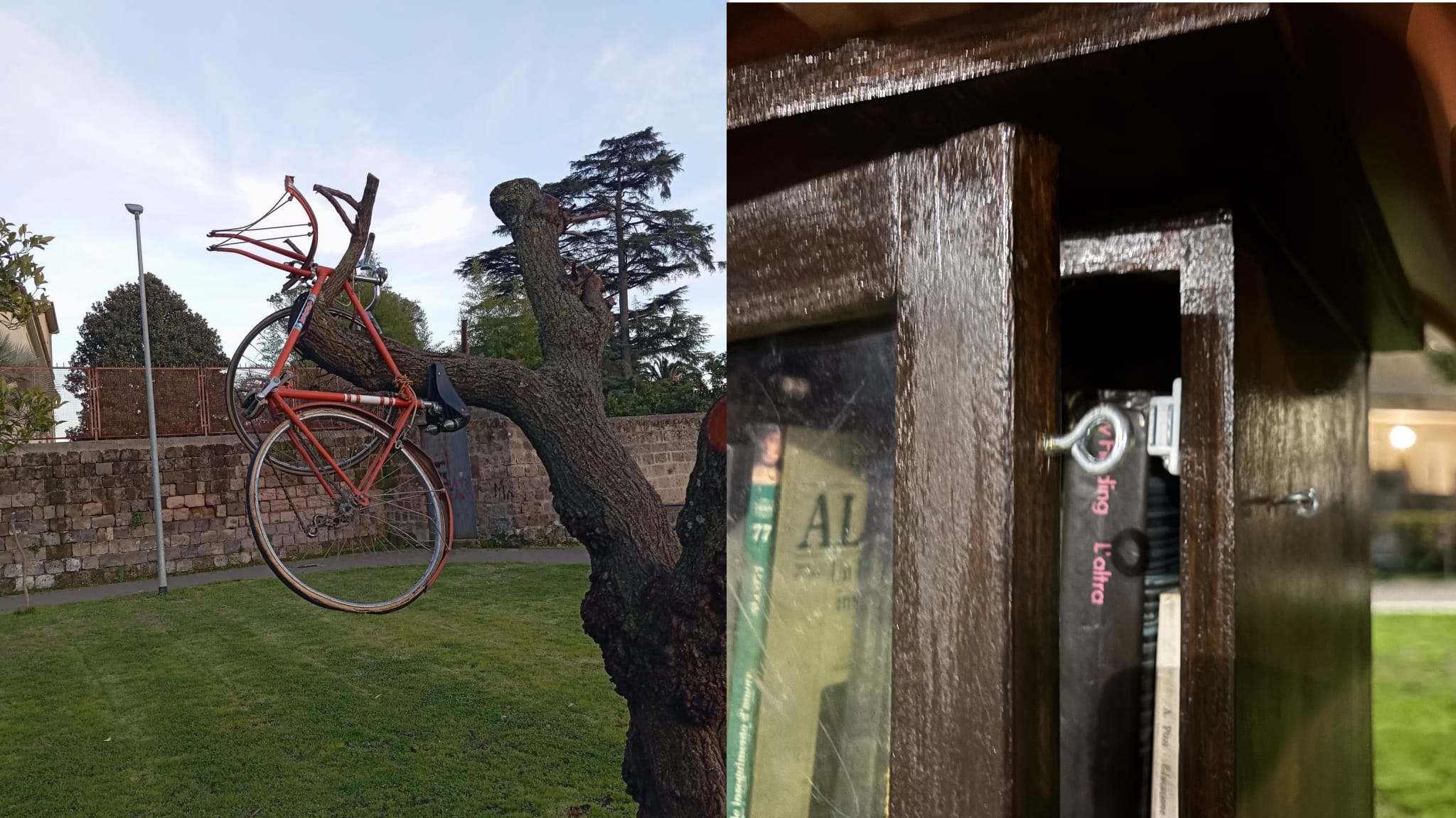 Oltre a ciò si aggiunge uno scenario di evidente degrado del parchetto: rifiuti abbandonati, incuria diffusa e situazioni emblematiche come addirittura una bici che è stata lasciata su un albero, simbolo di un’area lasciata senza adeguato controllo e tutela. L’Associazione sottolinea che le Casette dei Libri sono state realizzate e installate interamente con i fondi dei soli associati, quindi senza alcun contributo pubblico, con l’obiettivo di promuovere la lettura, favorire la condivisione culturale e creare spazi di socialità positiva per bambini, giovani e famiglie del quartiere.