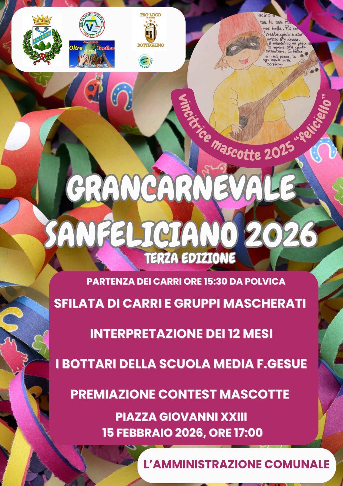 San Felice a Cancello. Domenica a San Felice a Cancello, il ‘Gran Carnevale Sanfeliciano’, evento che è giunto alla sua terza edizione.