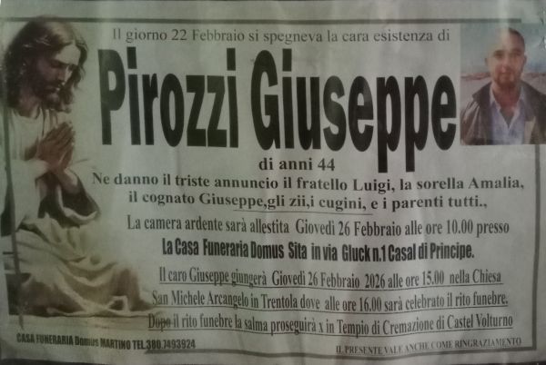 Trentola-Ducenta/Capua. Domenica scorsa, un uomo di 44 anni, di Trentola-Ducenta, Giuseppe Pirozzi, ha perso tragicamente la vita in un incidente stradale avvenuto a Capua.