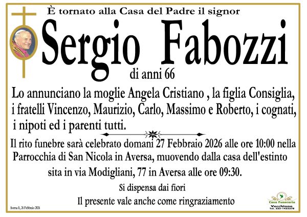 I suoi funerali sono stati celebrati questa mattina alle ore 10 presso la Chiesa di San Nicola ad Aversa. La cerimonia è stata caratterizzata da lacrime e commozione.