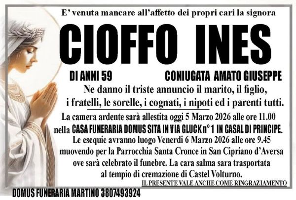San Cipriano d’Aversa. La città di San Cipriano d’Aversa è stata colpita da un doloroso lutto. Una madre di famiglia se ne è andata via prematuramente, all’età di 59 anni. Si chiamava Ines.
