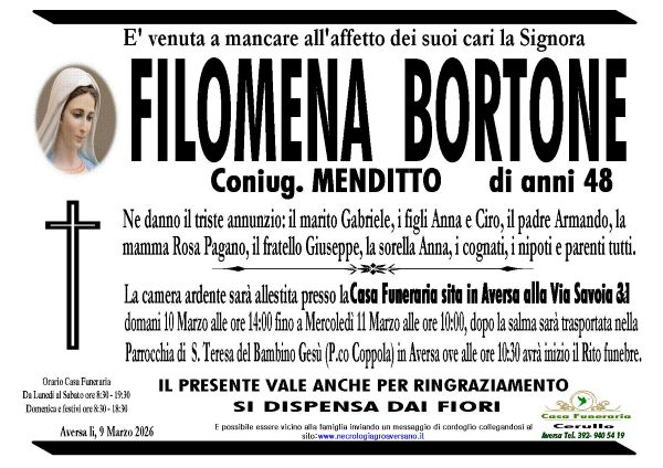 Aversa. Lutto nella città di Aversa. Una giovane madre si è spenta prematuramente nelle scorse ore generando grande dolore tra familiari e amici. Si chiamava Filomena Bortone, aveva 48 anni.