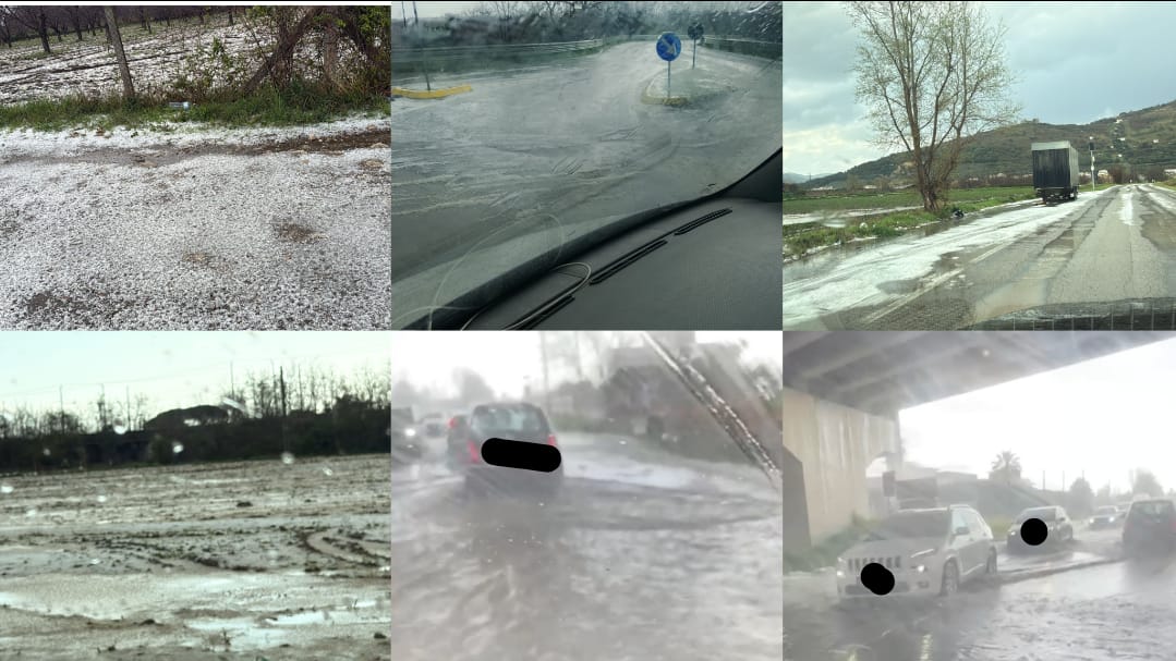 Le vetture si ritrovano a “navigare” con l’acqua che arrivano fino agli sportelli. Le strade che non sono allagate si ritrovano imbiancate a causa della grandine che le ha rivestite, condizione che comunque porta a disagi.
