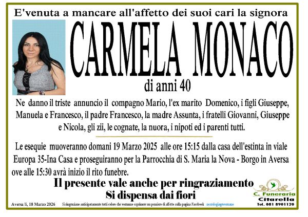 Aversa. Grande dolore e tristezza oggi ad Aversa, una giovane madre di famiglia si ne è andata via per sempre troppo presto nelle scorse ore. Aveva 40 anni e si chiamava Carmela Monaco.