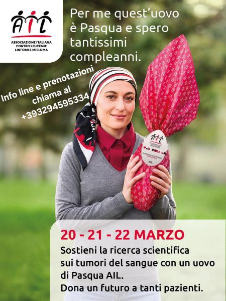 Da domani pomeriggio fino a domenica pomeriggio, sarà possibile contribuire concretamente alla lotta contro leucemie, linfomi e mieloma scegliendo le Uova AIL, simbolo di solidarietà e speranza.