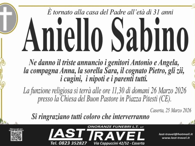 CASERTA. Si sono svolti oggi i funerali di Aniello Sabino, il 31enne di Caserta trovato senza vita nelle campagne di Casertavecchia nella notte tra lunedì e martedì. L’ultimo saluto si è tenuto presso la Chiesa del Buon Pastore in piazza Pitesti, dove familiari, amici e conoscenti si sono raccolti per dare l’addio al giovane.