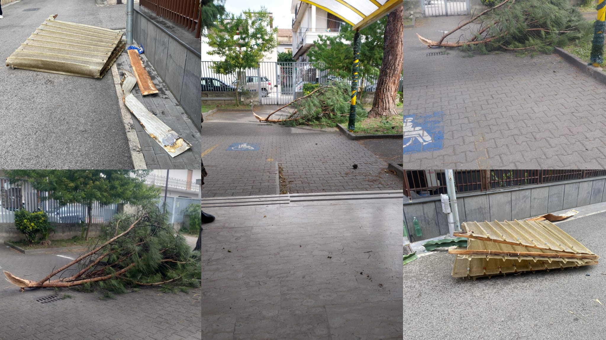 Oltre alla scuola, anche altre zone sono state colpite dalle raffiche. Una copertura di un edificio è saltata finendo in mezzo alla strada. Fortunatamente non ha colpito nessuno.