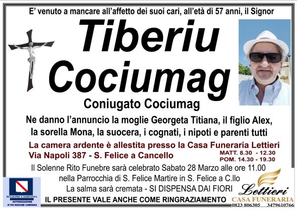 San Felice a Cancello. Oggi è un giorno di profonda tristezza e dolore per la comunità di San Felice a Cancello per la prematura scomparsa di Tiberiu Cociumag, un padre di famiglia che se ne è andato via per sempre all’età di 57 anni.