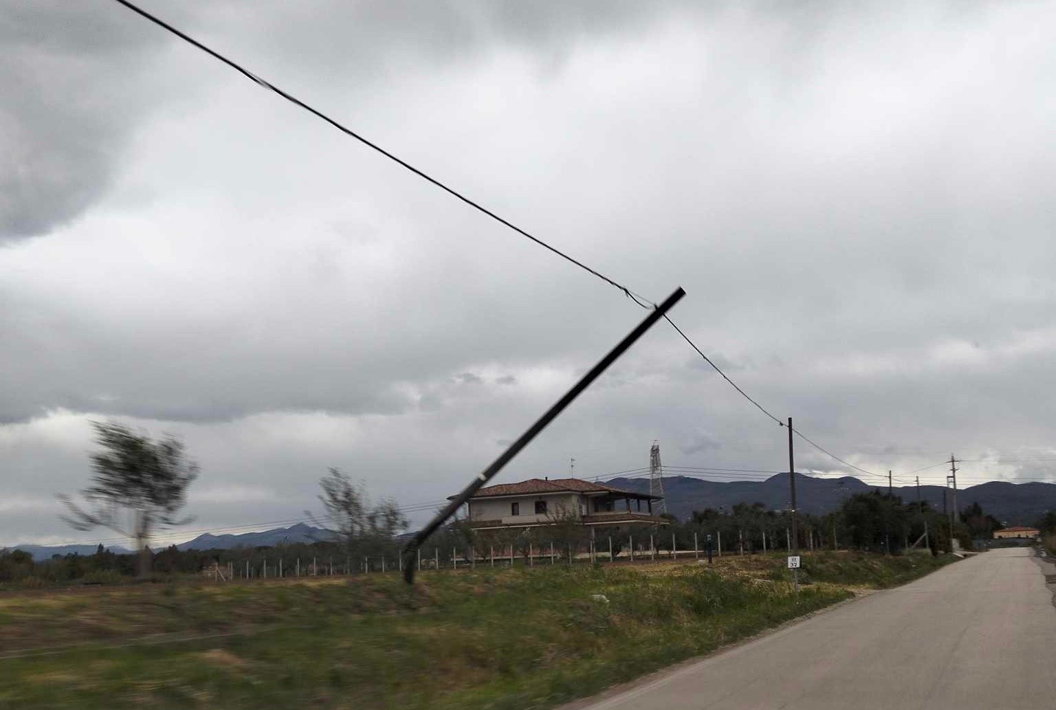 Non solo i pali telefonici, ma si sono verificati anche allagamenti e cadute di rami. La notizia è stata diffusa sui social con anche immagini dei pali inclinati.