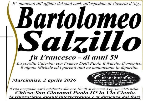 Marcianise. Grande dolore oggi nella città di Marcianise. Un uomo di 59 anni, Bartolomeo Sarzillo, ha perso prematuramente la vita nelle scorse ore.