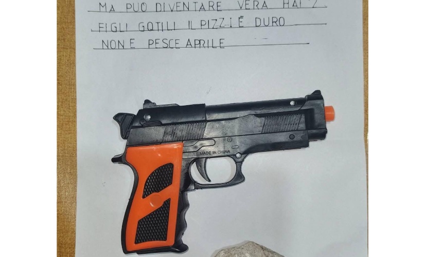 Secondo quanto ricostruito, tutto è accaduto nella serata del 1° aprile, intorno alle 19 quando l’uomo stava rientrando presso la propria abitazione a Bellona. Varcato il cancello pedonale, ha notato a terra un involucro in plastica, apparentemente fuori posto. Insospettito, si è avvicinato e ha scoperto al suo interno una pistola giocattolo di colore nero con dettagli arancioni, una pietra e un foglio contenente un messaggio minatorio.