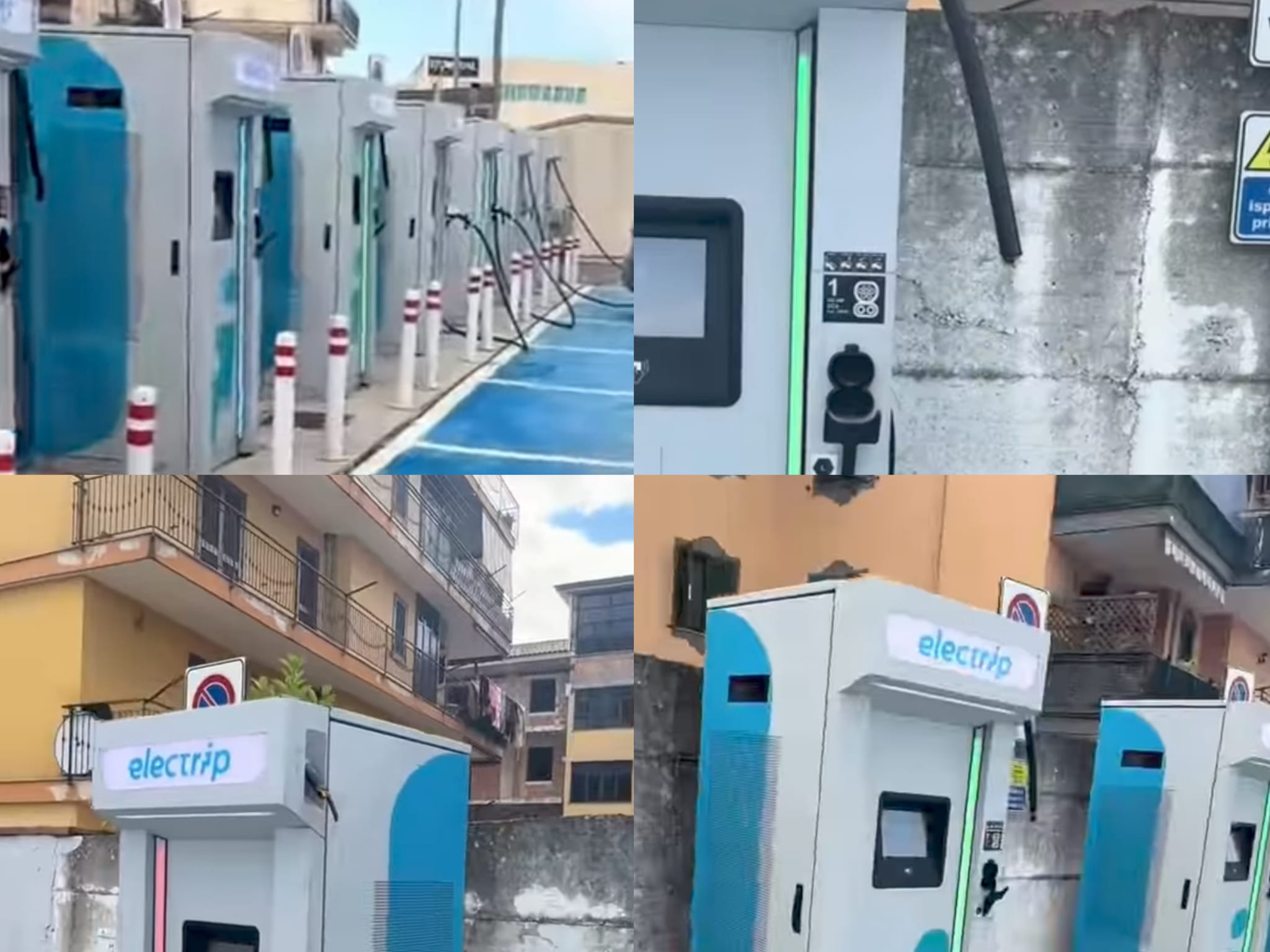 Hanno tagliato i cavi e li hanno portati via. Alcune sono state lasciate intatte, altre sfortunatamente sono state colpite dai malviventi e danneggiate. Colonnine che si trovano poco distante da Fabulae, un Centro Commerciale.