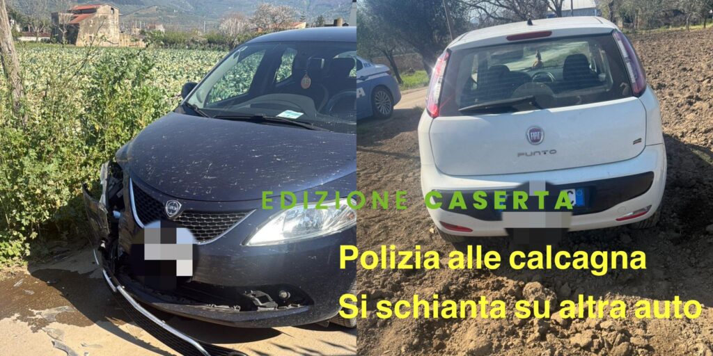 AGGIORNAMENTO. Il fuggitivo di Rotondi a bordo della Fiat Punto si è scontrato con una Lancia Y condotta dalla 43enne Rosellina Esposito di San Felice, molto conosciuta in zona (ex candidata al consiglio comunale ed esponente del direttivo di Fratelli d’Italia) che si stava recando a lavoro. Per fortuna la Esposito ha riportato solo lievissime contusioni. Mentre la sua vettura è rimasta danneggiata nella parte anteriore. Il soggetto in fuga a piedi, è riuscito a rientrare nella siìua zona ed è stato poi acciuffato dalla squadra mobile di Caserta e condotto presso il posto di polizia. Lo hanno beccato a Rotondi. Si tratta del 30enne D.A.N.