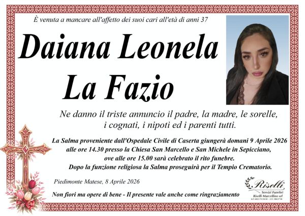 Si chiamava Daiana Leonela La Fazio, era di origine argentine ed era rientrata da pochi anni a Piedimonte. La salma è stata sottoposta ad esame autoptico.